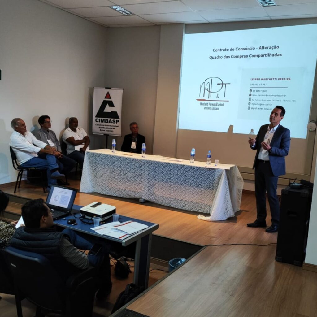 Na sequência, houve a apresentação, pelo assessor jurídico da AMBASP/CIMBASP, Dr. Leiner Marchetti, atualizando sobre as atas de registro de preço, e ainda, sobre a proposta do terceiro termo aditivo ao contrato do consórcio – CIMBASP.